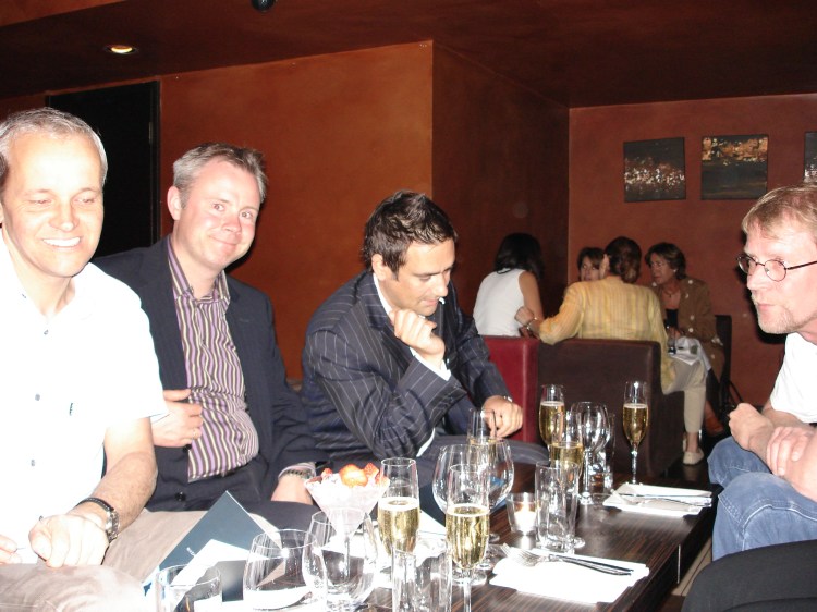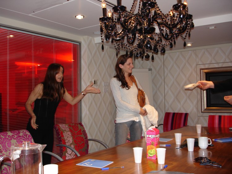Många möten blev det. Jag minns lite vagt ett möte på Virgin Galactics kontor vis Leicester Square (jag var aldrig på deras kontor på Half Moon Street) och senare också på ett mycket diskret Virgin-kontor i närheten av Notting Hill Gate den 8 juni 2006. På bilden nedan ser man den förfärliga ”kristallkronan” över bordet i konferensrummet. När vi frågade hur det kom sig att de hade denna något ovanliga armatur blev svaret helt enkelt: ”Richard likes it”!
