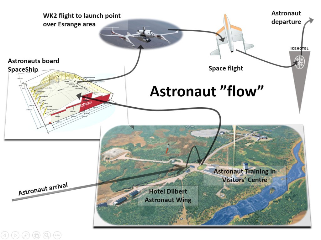 Det var Olle Norberg på Esrange som tog den första kontakten med Virgin Galactic och jag tror den starka kopplingen till turistattraktionen Ishotellet var det som lockade Virgin Galactic. Deras planerade (och numera färdigbyggda) startplats, SpacePort America i New Mexico, har ingen motsvarande turistattraktion som kan ge något kul för medföljande familj och vänner till rymdresenären att göra medan rymdresenären förbereder sig för äventyret. Ishotellet var en viktig samarbetspartner i kontakterna med Virgin Galactic.