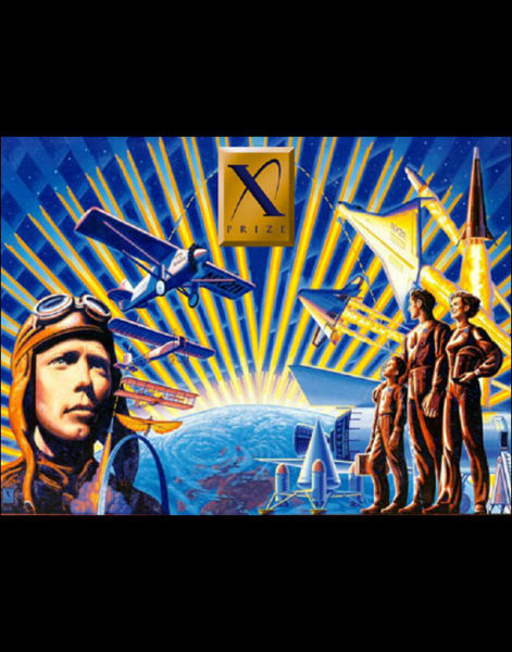 Hur det hela började. Alla möjliga knep har använts för att få fart på kommersiell rymdfart och för att få fri företagsamhet att ta sig an uppgiften att slita rymdfarten ur NASA:s och andra statliga myndigheters ”byråkratiska grepp”. Ett av de klyftigare försöken var X-prize, en tävling om att tekniskt demonstrera att man kan sända människor på ett kort rymdskutt till 100 km:s höjd två gånger på fjorton dagar. Det var rymdentreprenören Peter Diamandis (som även startat International Space University) som kom upp med idén och lyckades få den amerikansk-iranska familjen Ansari att satsa prissumman på 10 miljoner dollar. Tanken var att skapa en parallell till det pris på 25000 dollar som hotellägaren och New Yorkbon Raymond Orteig instiftade för den som först kunde flyga non-stop mellan New York och Paris eller tvärtom. Charles Lindbergh vann det priset.