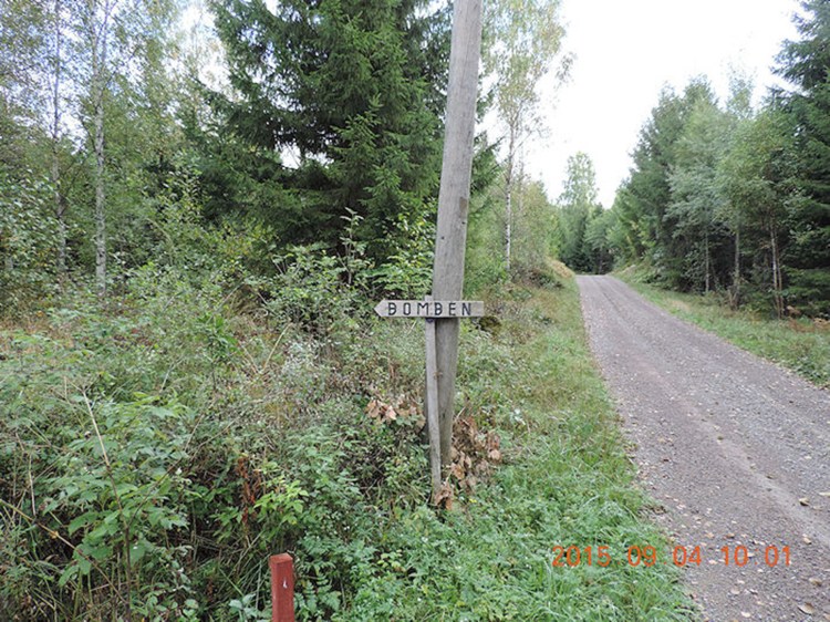 Nedslagsplatsen ligger i byn Bäckebo cirka 30 km nordväst om storstaden Kalmar i Smålands län. Närmaste bondgård heter Gräsdal. Avtagsvägen från väg 125 söderut vid Knivingaryd är lätt att hitta, men sedan behövs ytterligare en vänstersväng efter bara 100 meter till. Denna väg är en ganska smal grusväg och Gräsdals gård ligger gömd bakom ganska täta träd, så den är lätt att missa. Och då tappar man nästan hoppet om att få syn på skylten som visar var längs grusvägen i skogen den 300 meter långa gångstigen till nedslagskratern börjar. Så här ser det ut. På skylten står det ”BOMBEN”)!