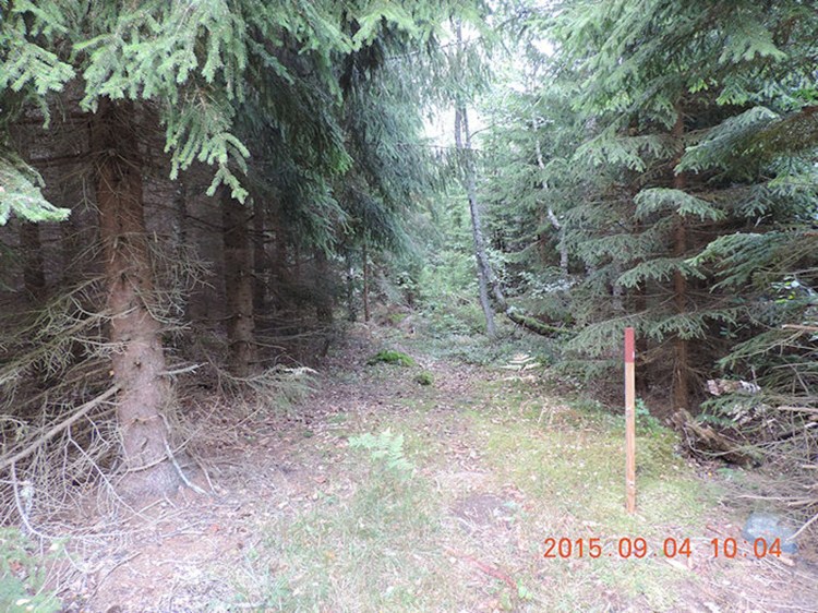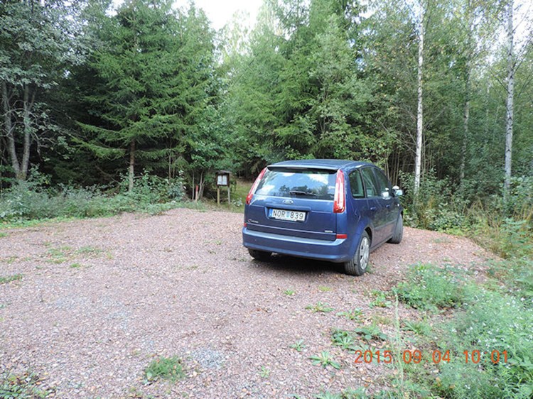 Bredvid denna skylt finns faktiskt en liten parkeringsplats och precis där finns en liten skylt som förklarar allt om raketen, som kallas ”Bäckebotorpeden” i Sverige eftersom ”missiler” på den tiden kallades ”lufttorpeder”. Du kan se min bil parkerad framför skylten. Trästolpen med en röd spets är markören för början av gångstigen. (Tiden som visas på bilderna med röda datummarkeringar är UT+1).