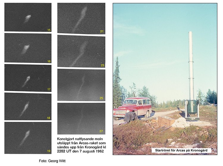 Ja Tom han rapporterade detta hem och det fungerade perfekt. Det enda jag tyckte var synd var att när vi äntligen lyckades få iväg den första raketen att vi då, samma dag – då föddes Sanna [Karin Susanna Witt född 7 augusti 1962] den morgonen min äldsta dotter – och sen nästa dag var det så vackert väder och Lars Rey och jag satt och sa nu gör vi oss av med Arcasen – vem behöver en Arcas nu? Och då fanns det väldigt få bilder av den. De där insamlingsförsöken det var ju negativt. Det positiva var ju att det första skottet då hittade man saker som jag fortfarande inte tror på. De var väl inte bedragare men inte att lita på. Det bisarra är att nu i januari har man samlat in partiklar med raketen Magic från Esrange. De lär ha hittat partiklar.