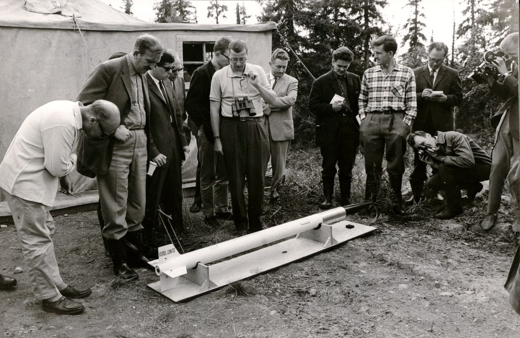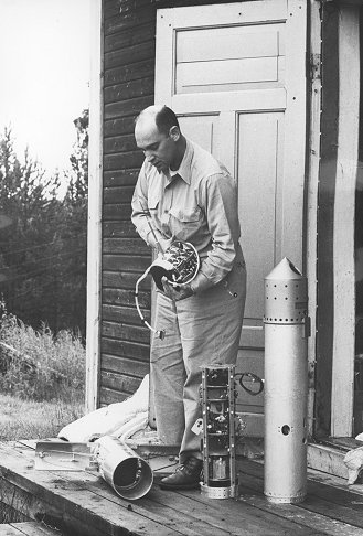 Ja, och detta beroende på att de hade intresse för stoft i rymden med tanke på jag vet inte vad. [Bilden nedan visar Bob Soberman med en av nyttolasterna för att samla in nattlysande molnpartiklar i Kronogård 1962]